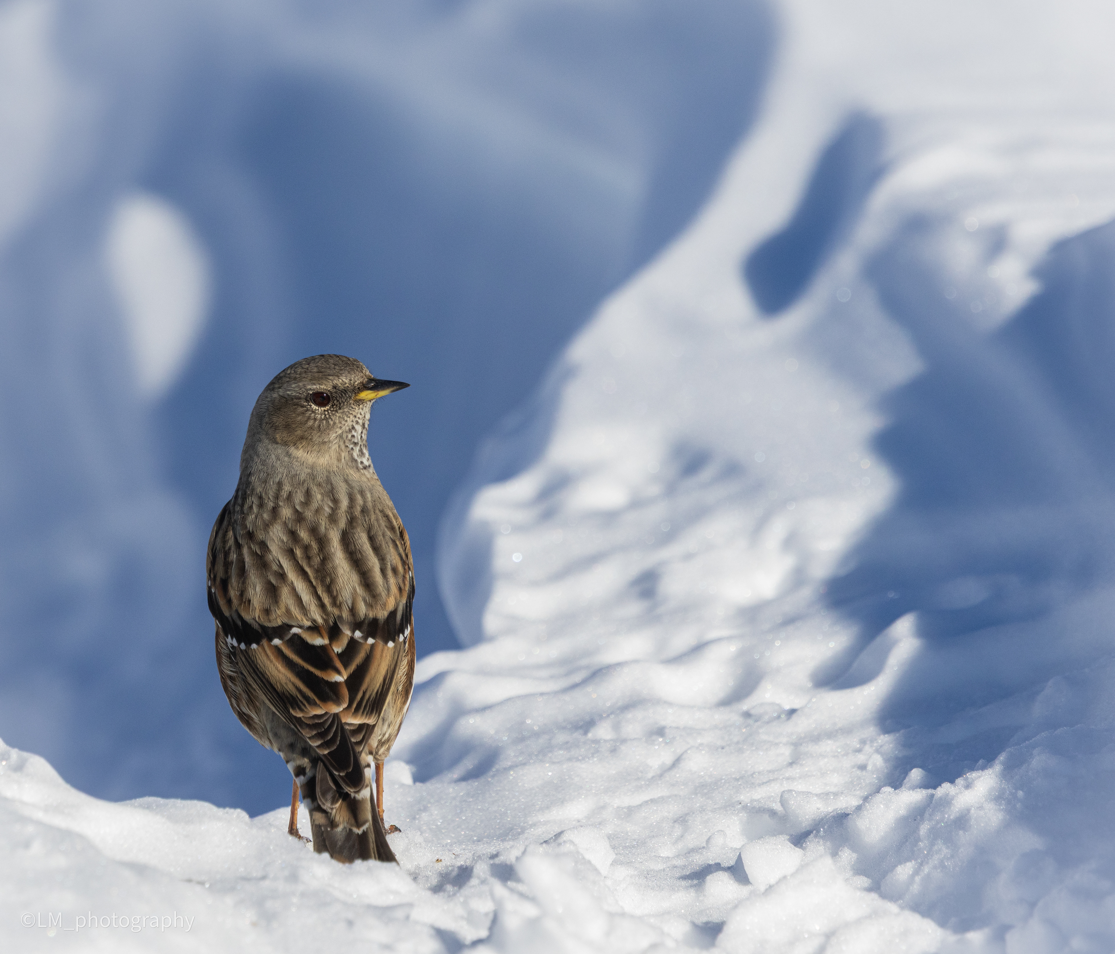" Sur les hauteurs rocailleuses, l'accenteur alpin se déplace avec agilité, chantant sa présence discrète parmi les rochers et les crêtes. Chaque battement d'ailes semble murmurer la vie secrète des montagnes "